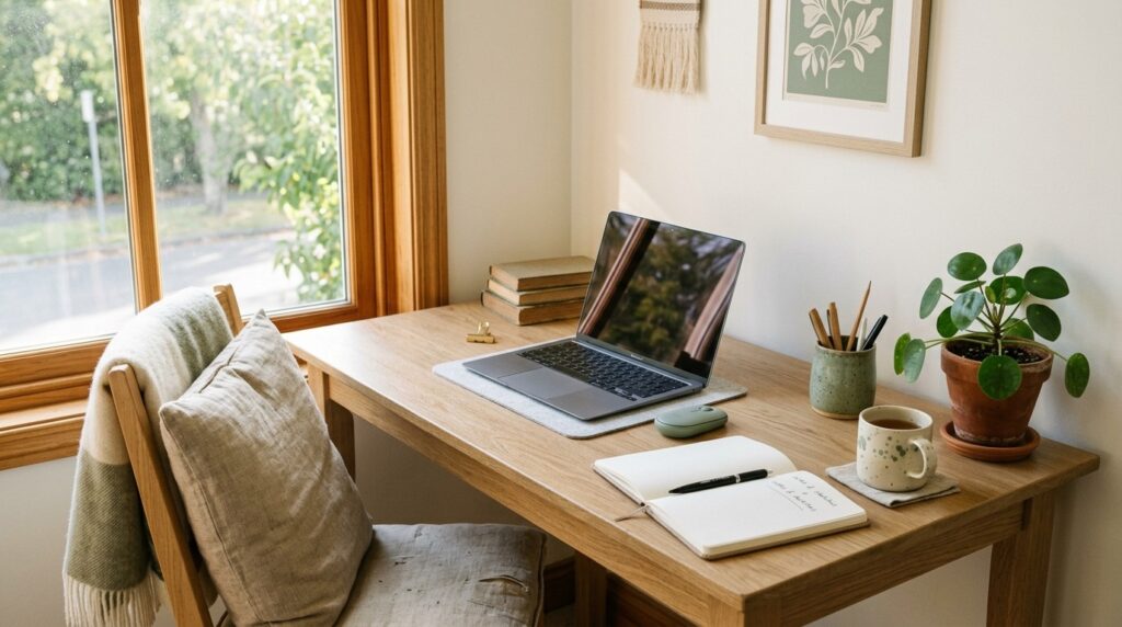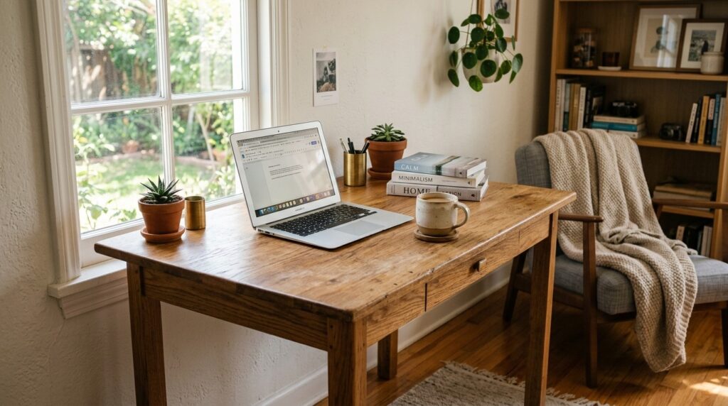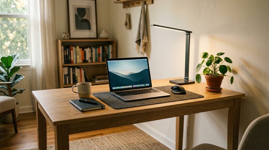 You don’t need to implement everything at once. Start with one or two ideas—maybe clearing your surface, adding warm lighting, or introducing a natural texture. As you build slowly, your workspace will begin to feel more like a place you actually want to spend time in.