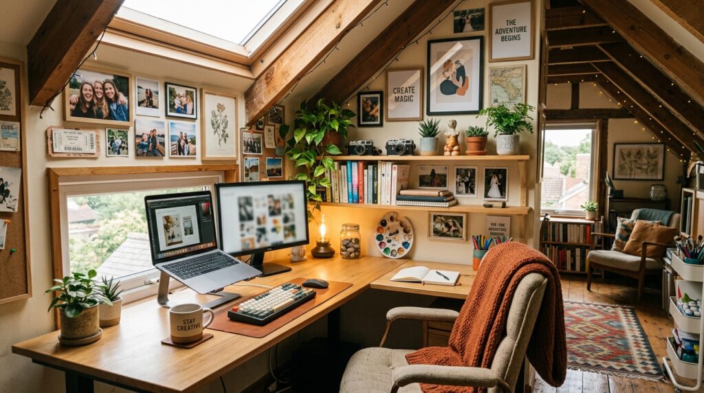 An attic office should feel like your space, not a generic setup. Personal touches make it more enjoyable and motivating.