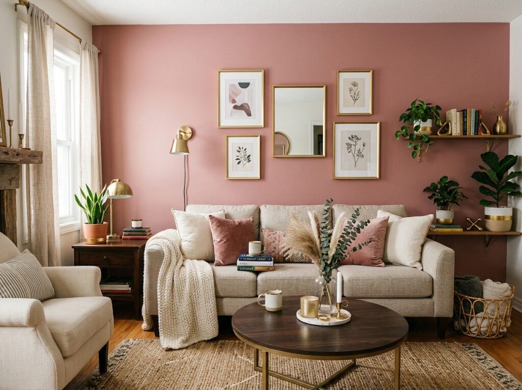 Dusty rose adds warmth and softness, creating a gentle, inviting atmosphere. It brings color without overwhelming the space.