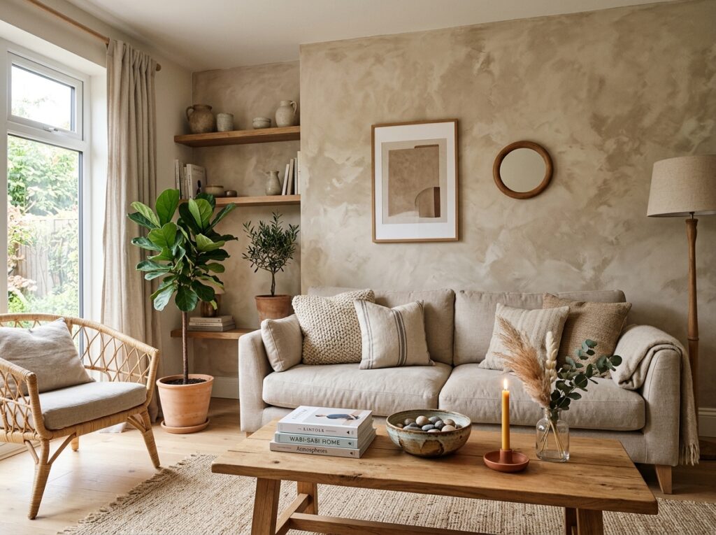 Choose warm neutrals like off-white or beige for a timeless look. Keep decor minimal but layered—think linen fabrics, wooden furniture, and ceramic pieces to enhance the natural aesthetic.