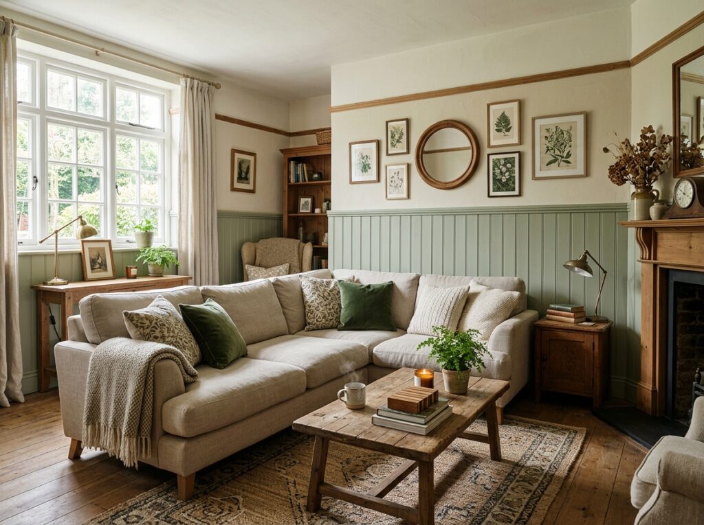 A soft sage green wall instantly brings a calm, grounded feeling into the living room. It feels fresh yet cozy, especially when paired with natural textures and warm lighting. The color reflects light beautifully, creating a soft, airy glow that makes the entire space feel relaxed and welcoming.