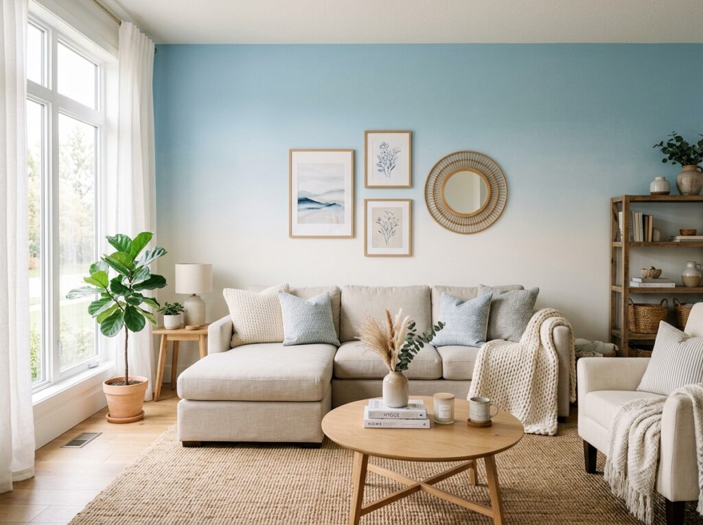 An ombre wall creates a soft gradient that feels calm and artistic. The gentle transition of color adds a dreamy, airy effect.
