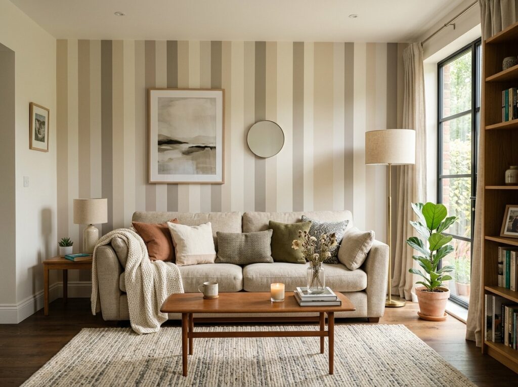 Stripes add subtle movement and can visually change how your room feels—vertical stripes add height while horizontal stripes create width.