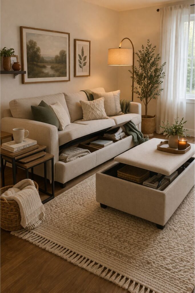 Use storage ottomans, nesting tables, or sofas with hidden compartments to maximize function without sacrificing style.