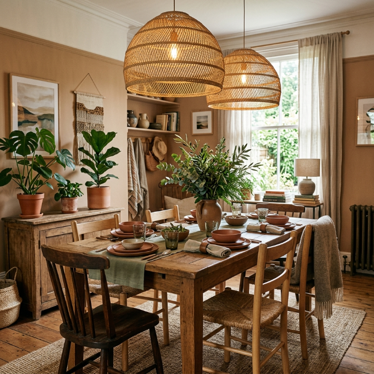 Lighting made from rattan or woven materials adds texture and warmth. It creates a relaxed, organic feel that’s perfect for cozy interiors.