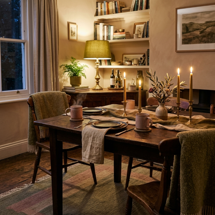 Choose warm bulbs and textured lampshades for added coziness.
