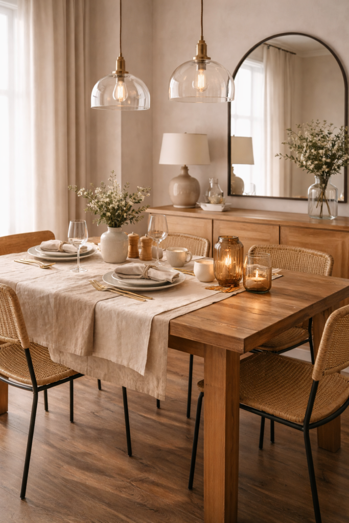 Start with just one or two changes — perhaps a statement light, a linen runner, or a new centerpiece. As you build on these details, your space will naturally begin to feel more refined and cohesive.