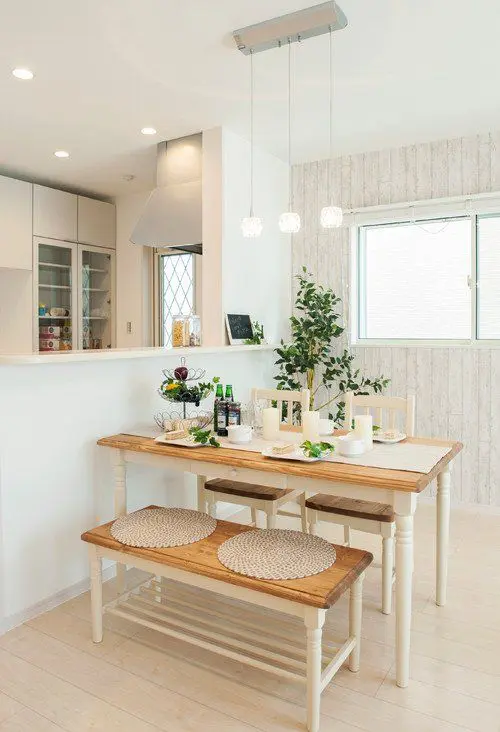 Soft whites, warm creams, and muted tones instantly make a small dining room feel more open and breathable. The gentle reflection of light across these shades creates an airy, calming atmosphere that feels spacious without being cold.