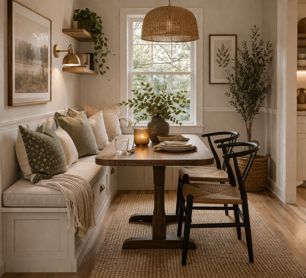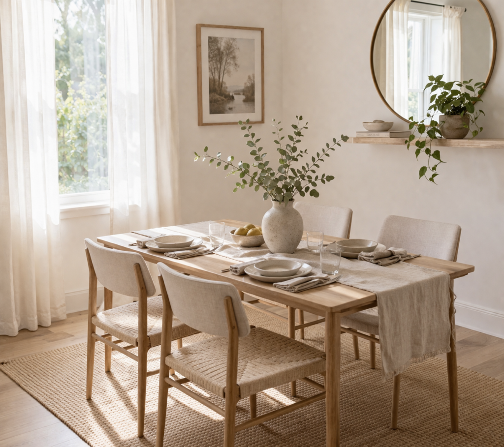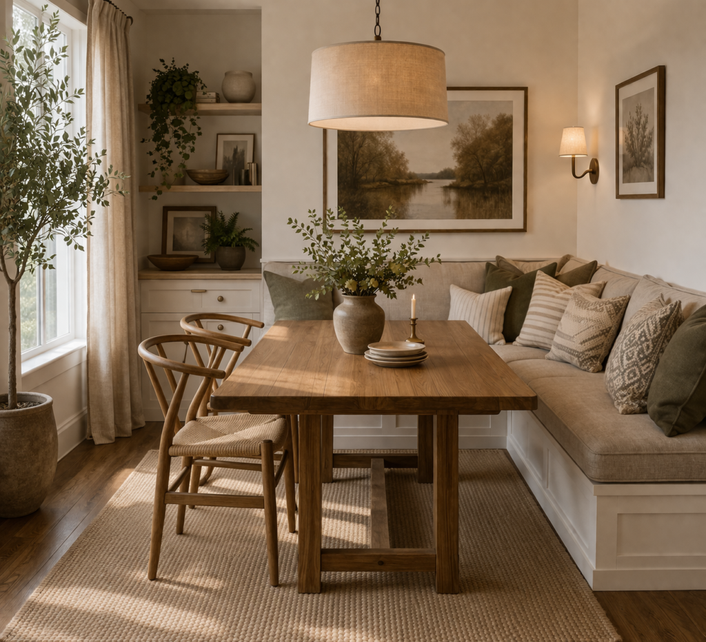 Creating a dining space that feels bigger isn’t about knocking down walls — it’s about making thoughtful, intentional design choices. With the right balance of light, texture, and smart furniture, even the smallest dining room can feel open, cozy, and beautifully styled.