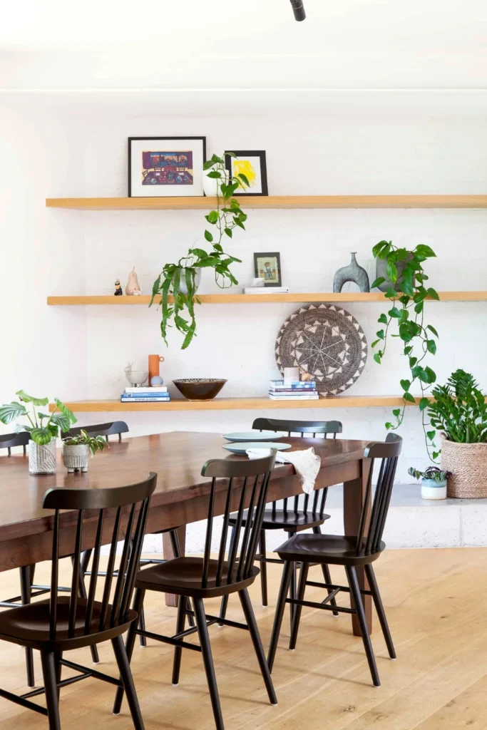 Closed cabinets can feel heavy. Open shelving keeps things light and visually accessible.